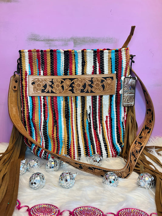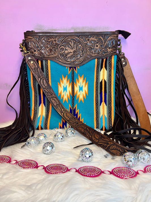 American Darling Hand Tooled Bag ~ Turquoise and Red striped
