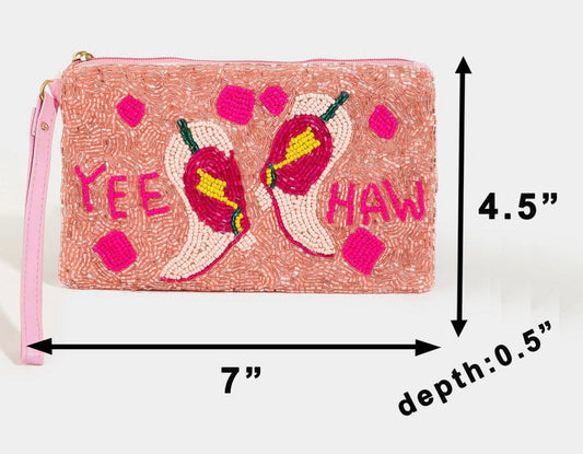 Beaded Yee Haw Coin Bag Pink and Coral